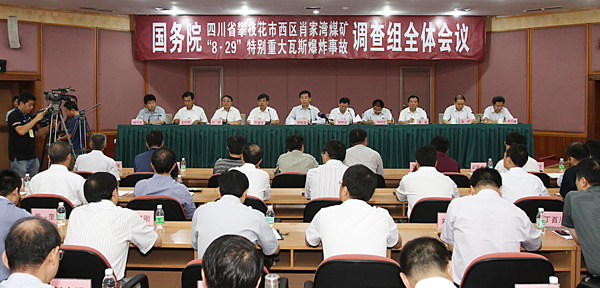 四川省攀枝花市西區(qū)肖家灣煤礦“8.29”特別重大瓦斯爆炸事故發(fā)生后,經(jīng)國(guó)務(wù)院批準(zhǔn)成立的事故調(diào)查組全體會(huì)議在攀枝花市召開(kāi),調(diào)查組組長(zhǎng)、國(guó)家安全監(jiān)管總局局長(zhǎng)楊棟梁出席會(huì)議并講話,強(qiáng)調(diào):嚴(yán)肅查處事故 深刻吸取教訓(xùn)。有效防范和堅(jiān)決遏制重特大事故發(fā)生。會(huì)上初步分析事故原因并且公布了事故調(diào)查組成員及監(jiān)督舉報(bào)電話和聯(lián)系人。